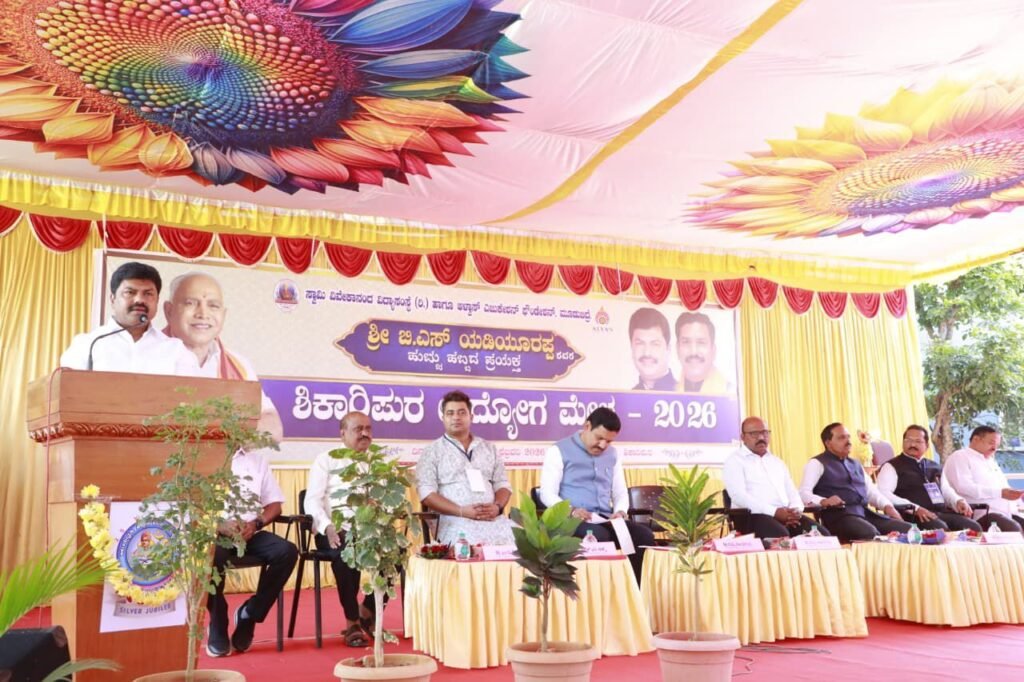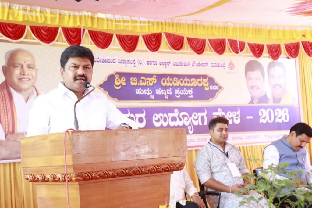 ಪಟ್ಟಣದ ಕುಮದ್ವತಿ ವಿದ್ಯಾ ಸಂಸ್ಥೆಯ ಆವರಣದಲ್ಲಿ ಮಾಜಿ ಮುಖ್ಯಮಂತ್ರಿ ಬಿ.ಎಸ್. ಯಡಿಯೂರಪ್ಪ ಅವರ ಜನ್ಮದಿನದ ಅಂಗವಾಗಿ ಸ್ವಾಮಿ ವಿವೇಕಾನಂದ ವಿದ್ಯಾ ಸಂಸ್ಥೆ ಹಾಗೂ ಆಳ್ವಾಸ್ ಎಜುಕೇಶನ್ ಫೌಂಡೇಶನ್ ಸಂಯುಕ್ತವಾಗಿ ಆಯೋಜಿಸಿದ್ದ ‘ಭವ್ಯ ಉದ್ಯೋಗ ಮೇಳ’ವನ್ನು ಉದ್ಘಾಟಿಸಿ ಅವರು ಮಾತನಾಡಿದರು.