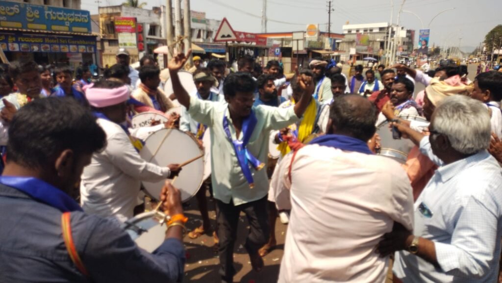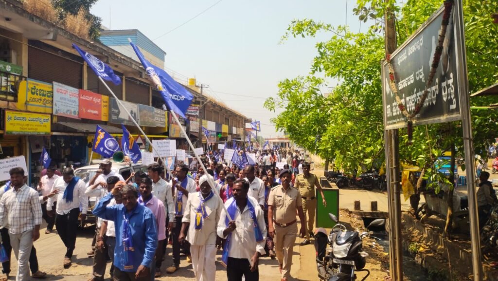 ನಗರದ ಅಂಬೇಡ್ಕರ್ ವೃತ್ತದಲ್ಲಿ ಜಮಾಯಿಸಿದ ನೂರಾರು ಪ್ರತಿಭಟನಾಕಾರರು ಸಂವಿಧಾನ ಶಿಲ್ಪಿ ಡಾ. ಬಿ.ಆರ್. ಅಂಬೇಡ್ಕರ್ ಪ್ರತಿಮೆಗೆ ಮಾಲಾರ್ಪಣೆ ಮಾಡಿ ಮೆರವಣಿಗೆಗೆ ಚಾಲನೆ ನೀಡಿದರು. ವೃತ್ತದಲ್ಲಿ ಕೆಲಕಾಲ ಮಾನವ ಸರಪಳಿ ನಿರ್ಮಿಸಿ ರಸ್ತೆ ತಡೆ ನಡೆಸಿದ ಸಮಾಜದ ಮುಖಂಡರು ಸರ್ಕಾರದ ವಿರುದ್ಧ ಘೋಷಣೆಗಳನ್ನು ಕೂಗಿದರು.